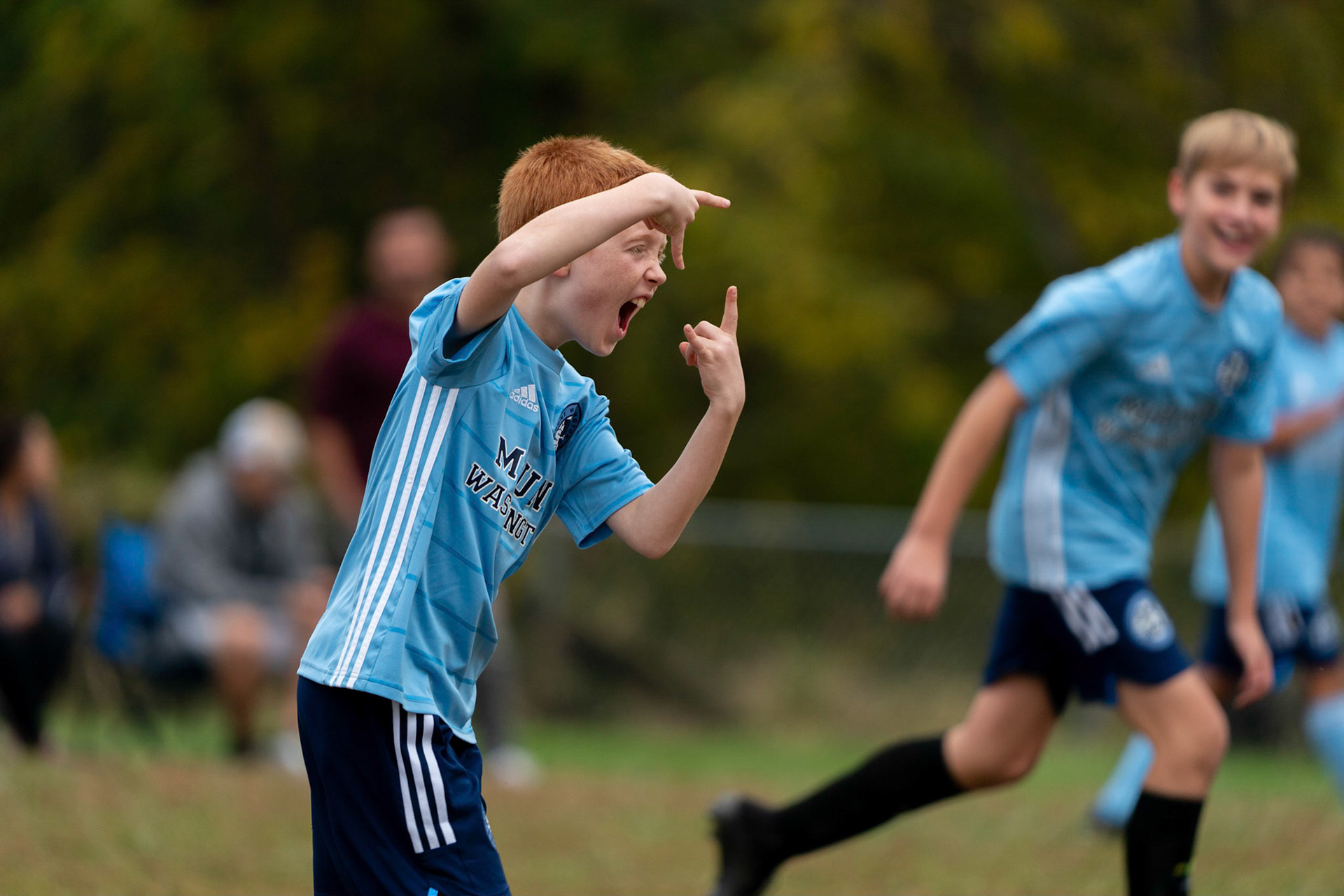 Calvin reacts to scoring in the first half of Mt Washington's 3-1 home victory over Northwest SC on October 23, 2022.