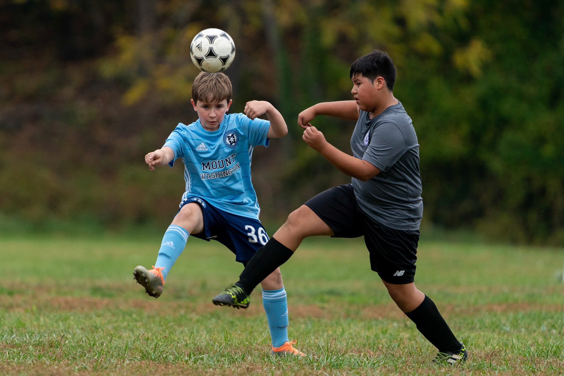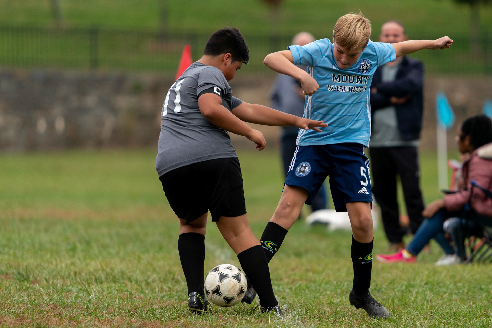 Cameron collides at midfield in a fight for control during the second half of Mt Washington's 3-1 home victory over Northwest SC on October 23, 2022.