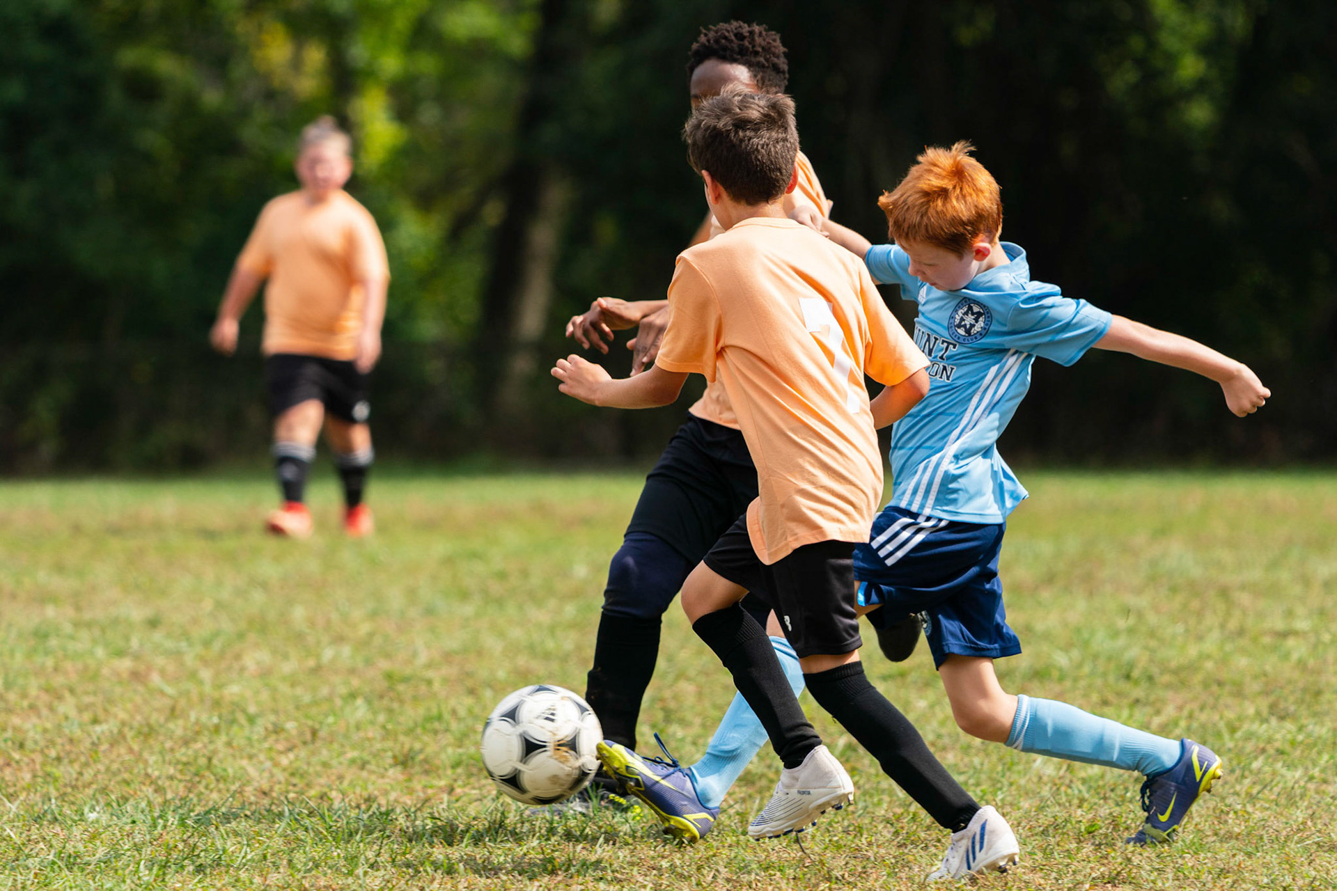 Mt. Washington’s Caleb is surrounded by three opposing players as Drake, left, and Jonah, right, look on during their home game against Northwest SC on September 25, 2022.